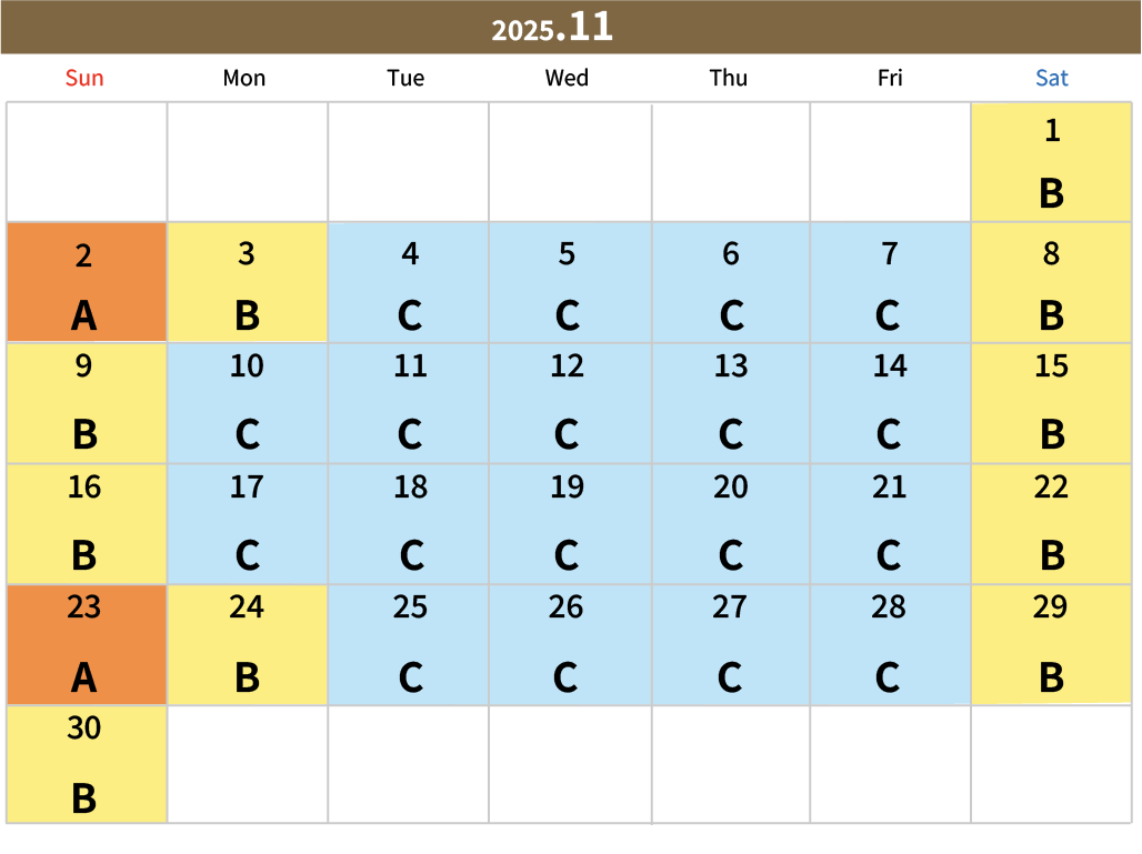 ※請在上述日曆上確認到場日期A・B・C・D後,查看價格表。