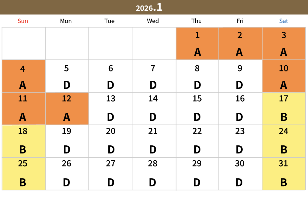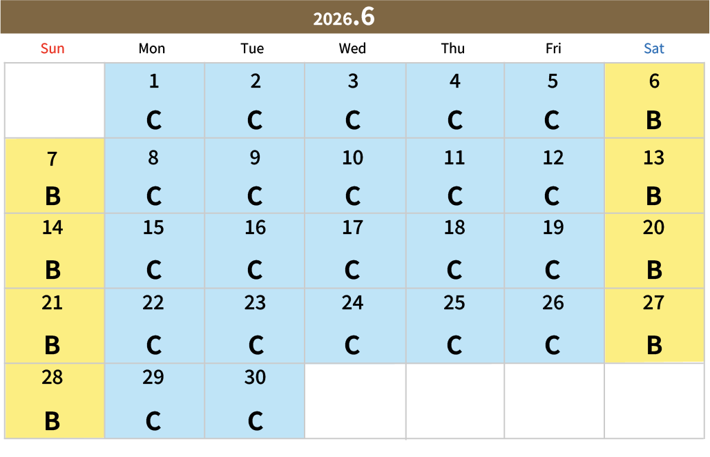 ※請在上述日曆上確認到場日期A・B・C・D後,查看價格表。